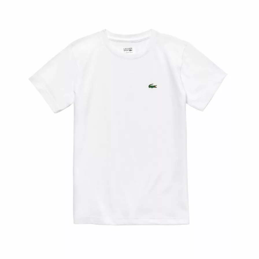Sikre det unge talent den bedste spillekomfort på banen med denne junior t-shirt. Den er lavet af en blanding af bomuld og polyester, hvilket gør den blød, åndbar og svedabsorberende. Desuden har Lacoste inkorporeret Ultra Dry i trøjen, hvilket gør den hurtigtørrende.