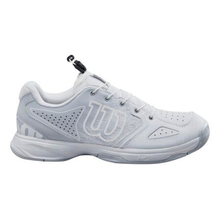 Super lækker junior sko i en flot hvid farve, med grå detaljer.