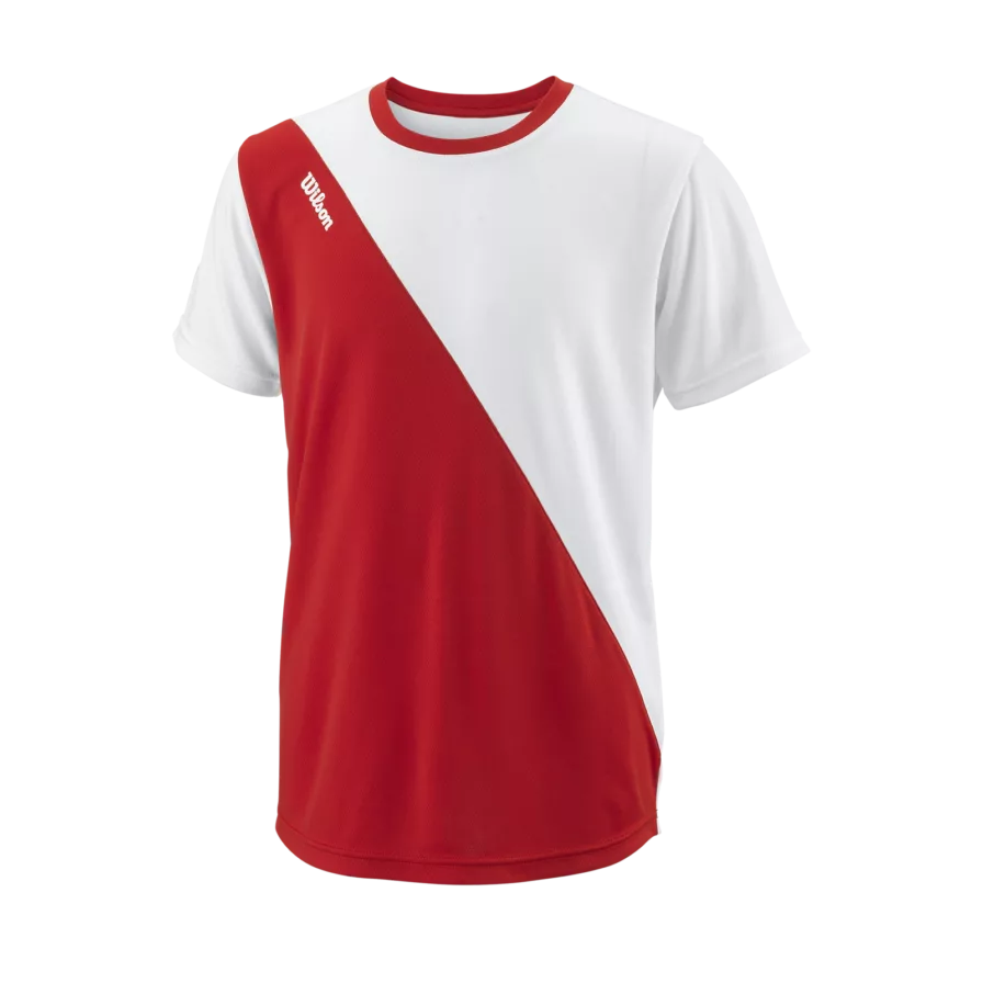 Wilson præsenterer her deres junior sports t-shirt til drenge i et klassisk rødt / hvidt design. Du får en stilren trænings t-shirt, som er produceret i bløde materialer. Giv dig selv en letvægtsfølelse på banen!