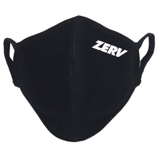 Dette mundbind fra ZERV er et 3-lags stofmundbind til voksne i farven sort og med et hvidt ZERV logo.