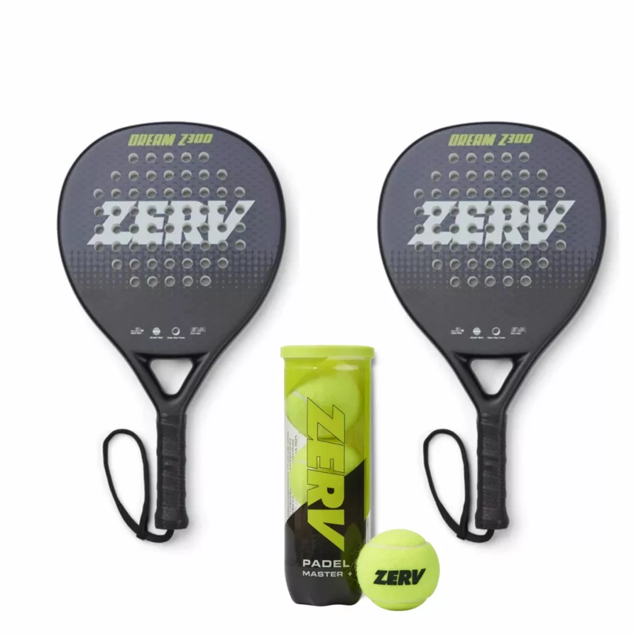 ZERV padel pakketilbud med to solide kvalitets bat til begynderen som ønsker ekstra kontrol + et rør bolde.